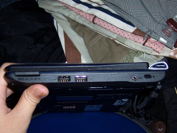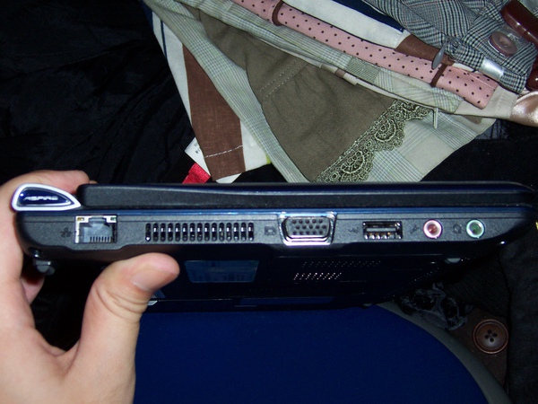 側邊總共有三個USB孔, RJ-45網路孔, SD卡的插槽; 另外當然還有簡報用的VGA輸出