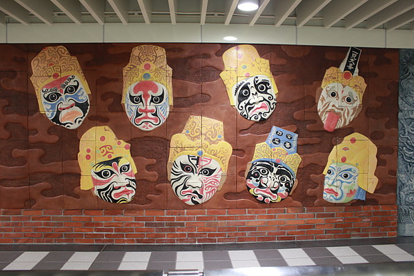 比較特別的是蘆洲線的月台層, 軌道外側的牆上也是有特殊的彩繪