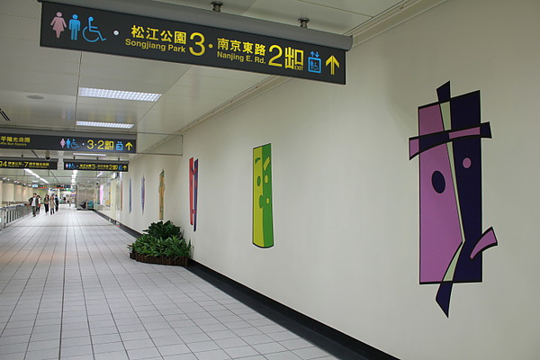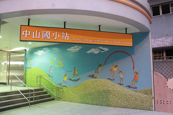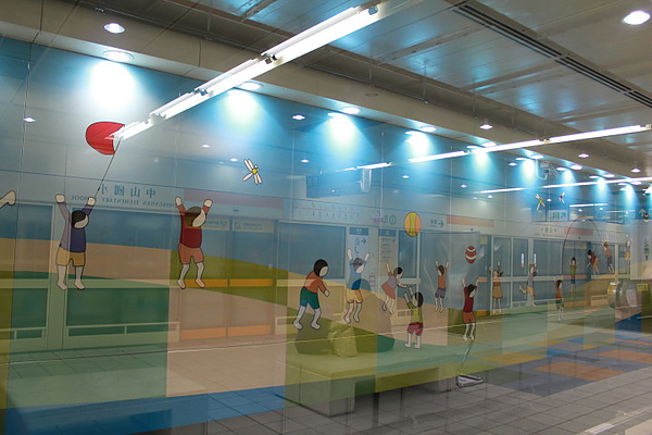 而在中山國小站, 月台層的彩繪則是小朋友的玩樂, 還蠻符合這個站名的~