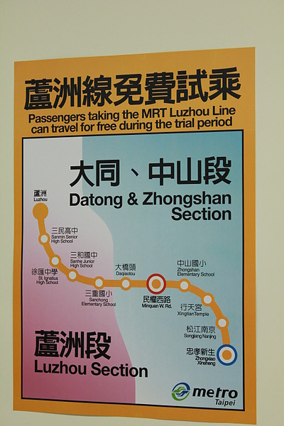 憑悠遊卡搭乘蘆洲線是完全免費的