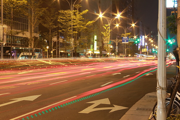 出站無聊時, 來拍個夜間車流, 看起來還蠻有意思的 XD