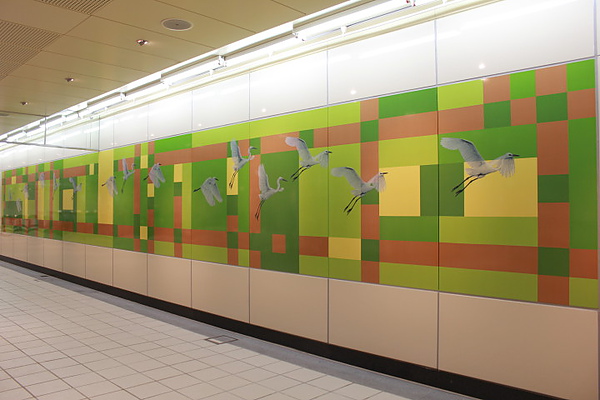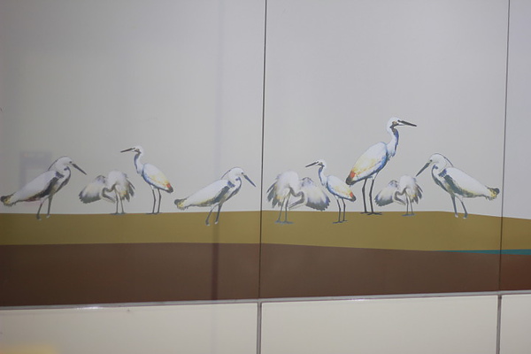 從牆壁上可以看到主題是"白鷺鷥", 而其他每一個車站都有不同的色彩跟花樣