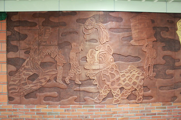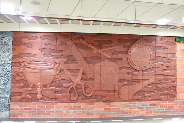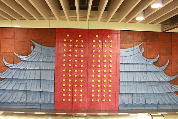 離開月台層, 果然在牆壁上看到很符合這個站名的藝術設計