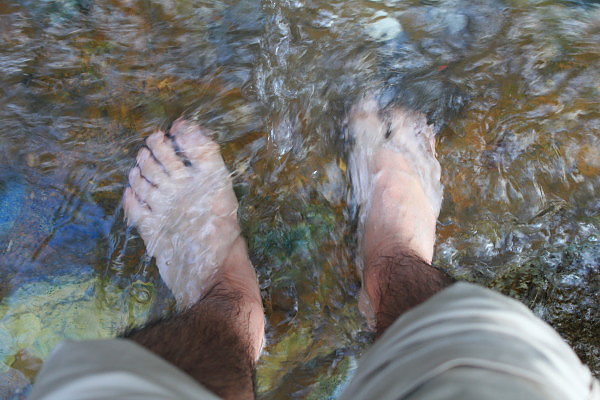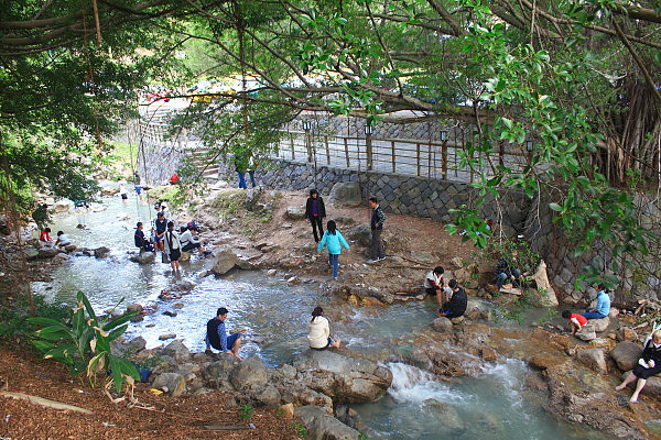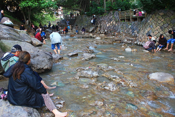 這邊很多人在泡腳, 水溫雖然不算熱, 但是也算溫暖的~
