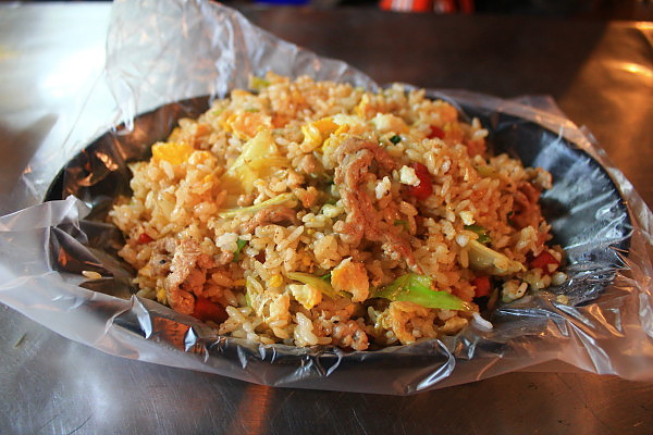 用鐵板炒的豬肉炒飯, 風味獨特~