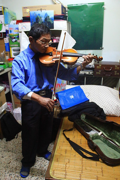 這時老爸又拿出他最珍愛的小提琴~