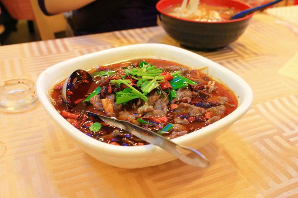 這鍋牛肉看起來比較嚇人, 不過事實上沒那麼辣