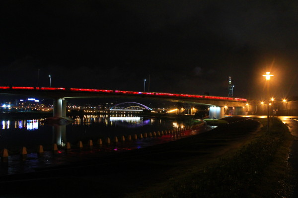 夜晚下過雨後的基隆河畔, 景色還算是不錯的