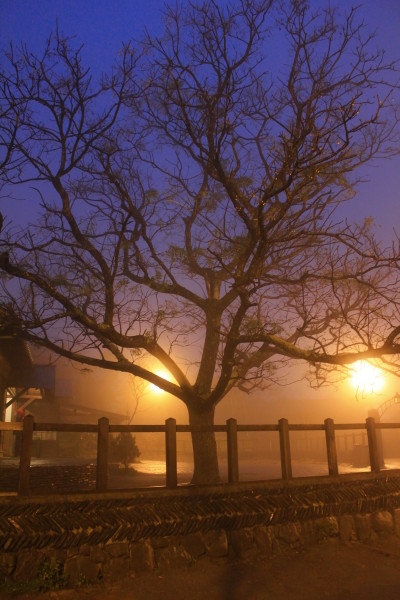 時間接近傍晚了, 街上依舊瀰漫著大霧