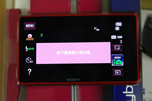 鏡頭蓋很特別, 是整片式的往下滑動打開