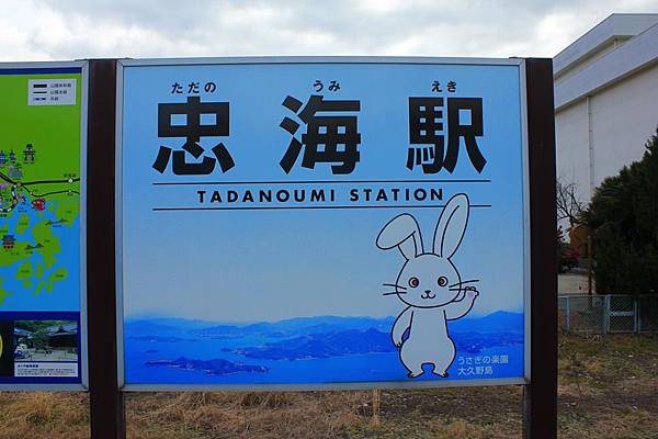 列車約莫行駛20多分鐘就會到達忠海站, 注意到這特殊的看板了嗎?