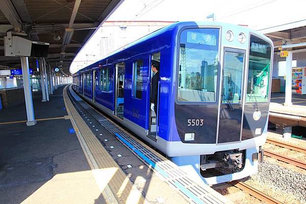 回到車站, 搭上了塗裝很有復古風的5000系, 讓人想到了同是復古風塗裝的能勢電鐵5100系