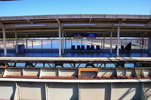 武庫川站相當的特別, 因為阪神本線的月台就直接建在跨越武庫川的橋上!!