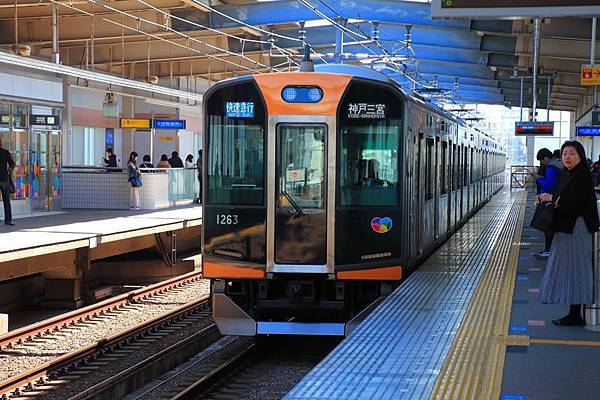 阪神本線上的普通車來往於梅田和高速神戶之間, 急行則來往於梅田和西宮之間