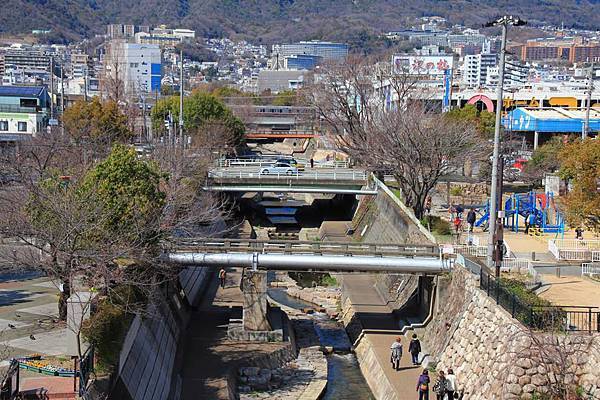 阪神還蠻多這樣的車站, 不過河川不一定很寬就是了(之前武庫川站則是其中之最)
