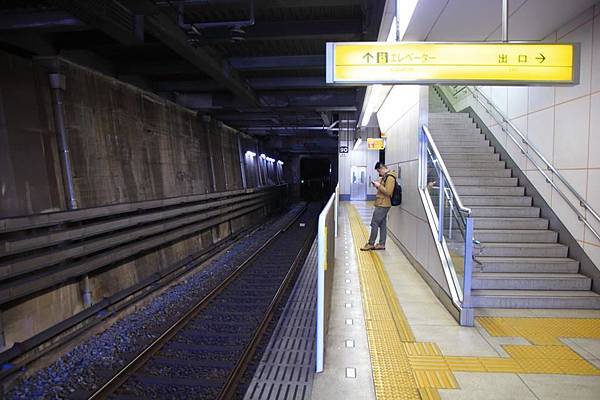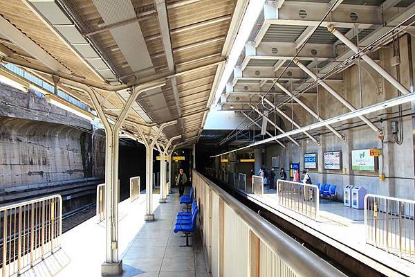 車站剛好就位在鑽進地下的隧道口, 月台西側末端有一小段在隧道內