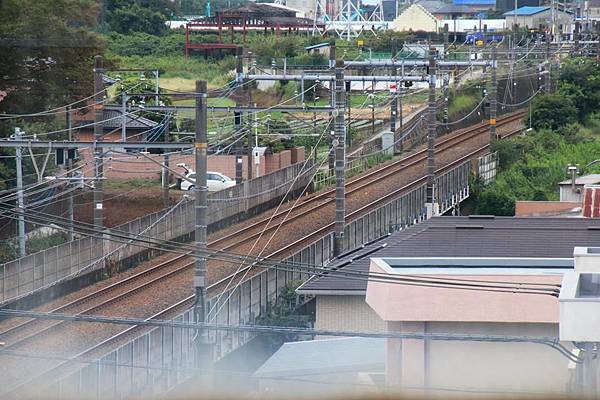 遠方是京成電鐵的高砂檢車區, 一片密密麻麻的道岔