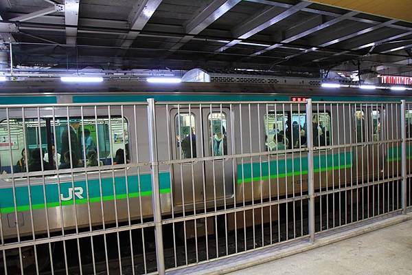 而旁邊用柵欄隔開的, 是JR常磐快速線的月台(3番線)