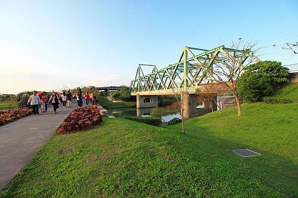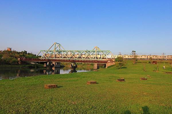 走在高架鐵路的下方, 朝西北側的冬山河方向前進