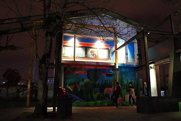 天色漸漸暗了, 月台上的"路燈"也點亮了