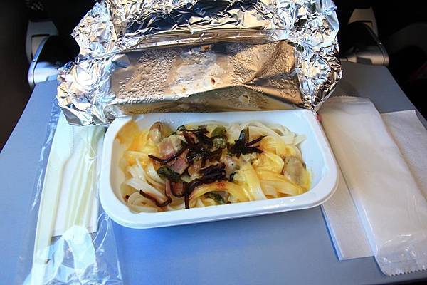只是當空服員跟我要登機證去蓋章並且送上餐點後...