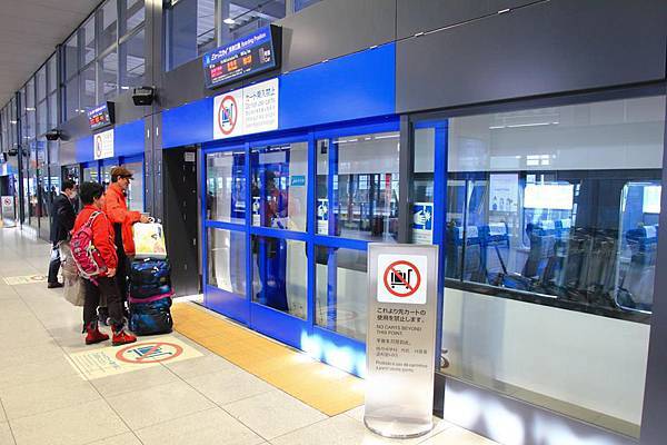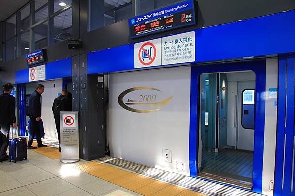 右方是ミュースカイ專用的1番線, 閘門是直接對應車門