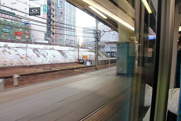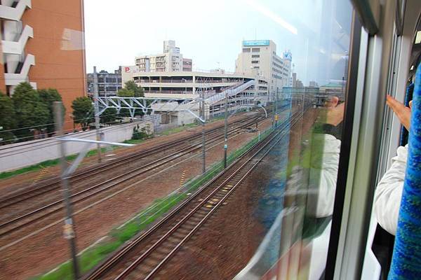 即將抵達第一個停靠站"神宮前", 可以看到列車的高度明顯高出地面許多