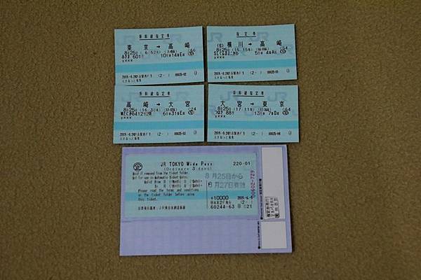隔天的行程就是靠東京廣域周遊券和這幾張指定席券了
