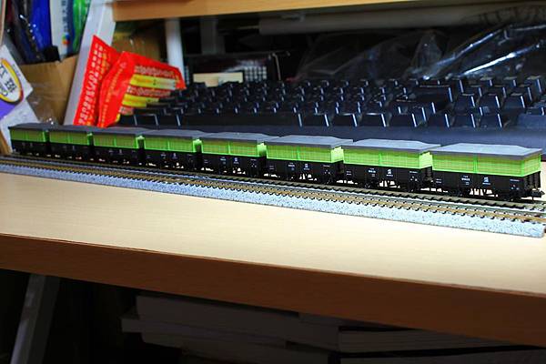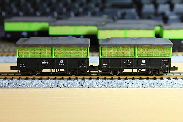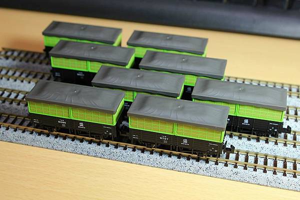 而這回的トラ90000形雖然一樣是二軸貨車, 不過產品卻是包含很多輛車的set