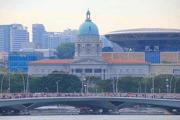 遠方是新加坡國家美術館, 後面那個看起來像飛碟的是最高法院