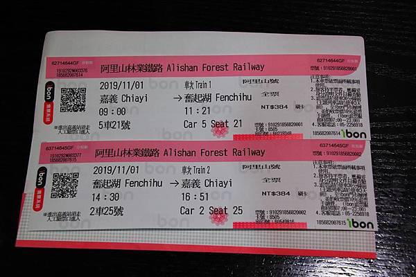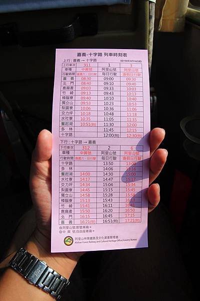 去程是早上從嘉義出發的阿里山號1車次, 回程是下午返回的阿里山號2車次