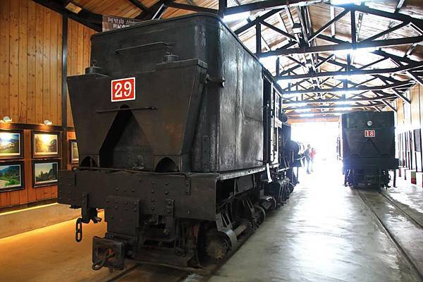 車庫內靜態陳列了兩輛蒸汽火車