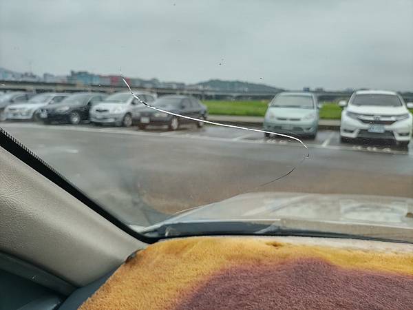 時間點在剛好整整一年前, 某日發現前擋風玻璃左側突然出現一道不規則形狀的裂痕