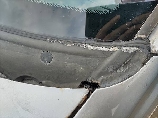 而且影響的範圍還不只是漏水這麼簡單, 最後連前擋風玻璃都成為受害者