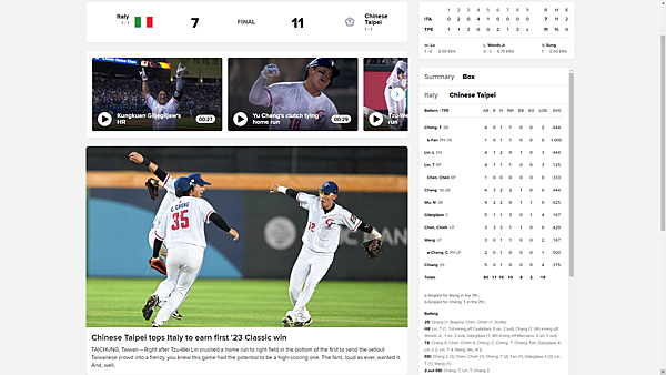 最終台灣就在總計擊出16安, 包含三發全壘打的情況下, 以11:7收下這次A組預賽首勝