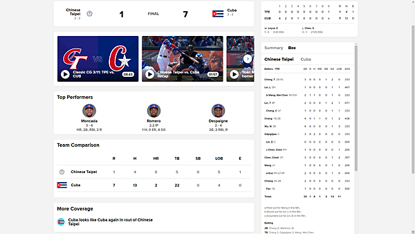 [2023WBC] 古巴 7:1 台灣 無緣東京八強賽