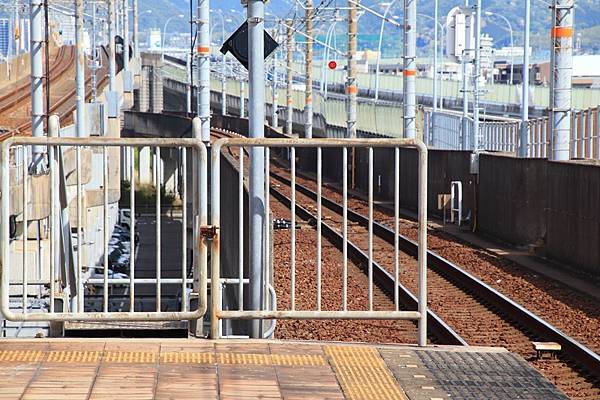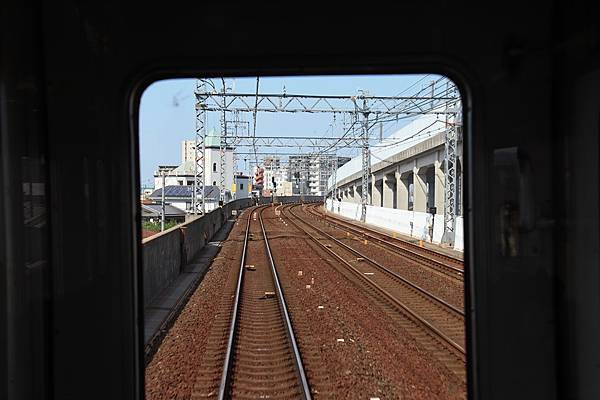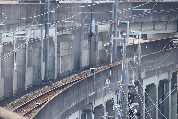 左邊比較高的高架橋是往關西空港的方向, 也就是列車前進中的路線