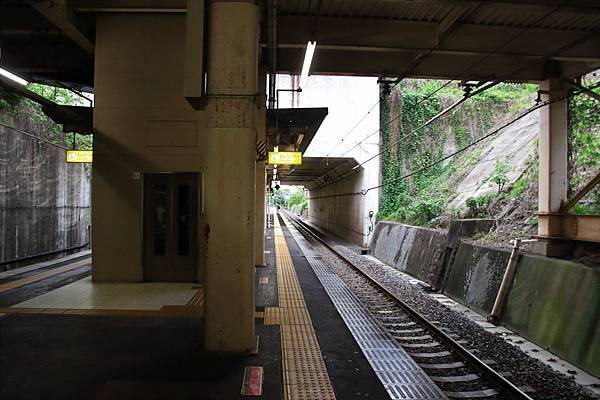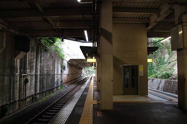 月台的中段, 光線大多被遮蔽, 有一種郊外無人站的感覺
