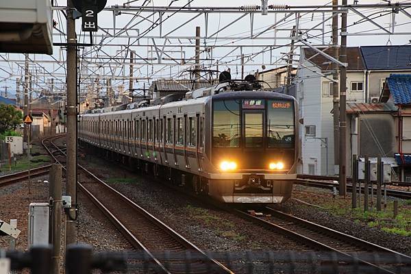 一列207系從對向轉過來進入1番のりば, 即將擔綱始發往京橋的普通列車