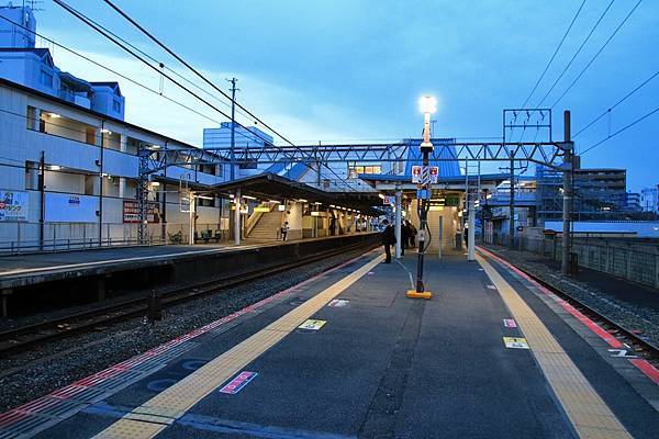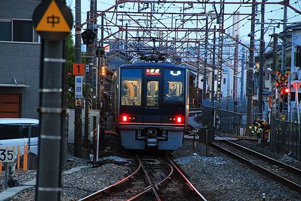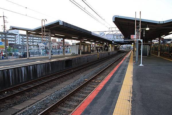 對向開往松井山手的普通列車, 看得出來光線已有些不足