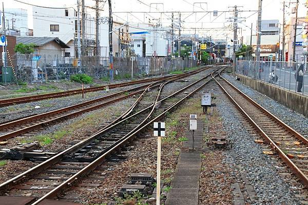 右邊出現了神奇的線路 - 這是通往近畿車輛廠區的聯絡線