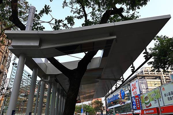 這種在月台遮雨棚為了樹而開洞的設計