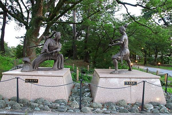 設置在廣場旁, 宮本武藏與佐佐木小次郎決鬥的雕像