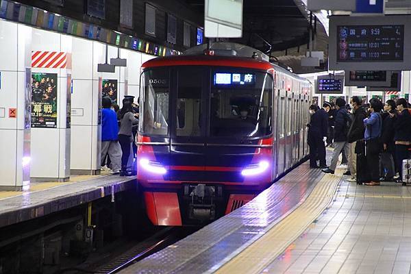 來了一班由兩組車組成, 有八節車廂的"ミュースカイ", 但這不是今天要搭的車