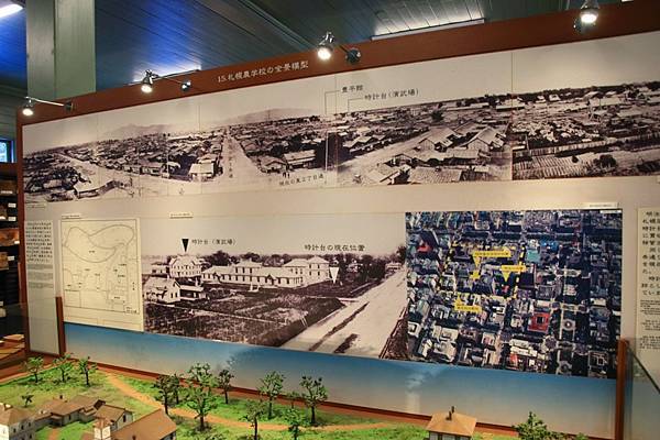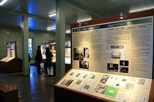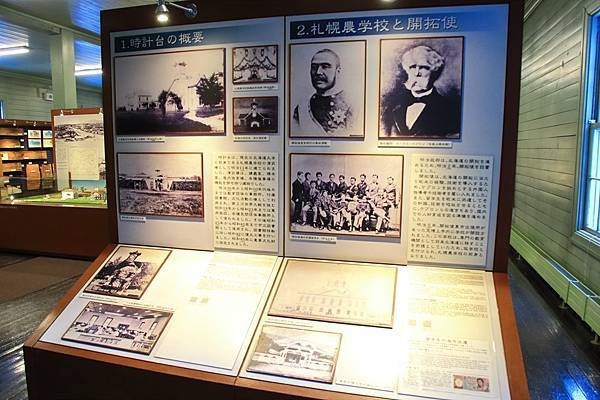 1F現在作為展示室使用, 介紹了時計台, 札幌農學校以及北海道開拓使等等的歷史