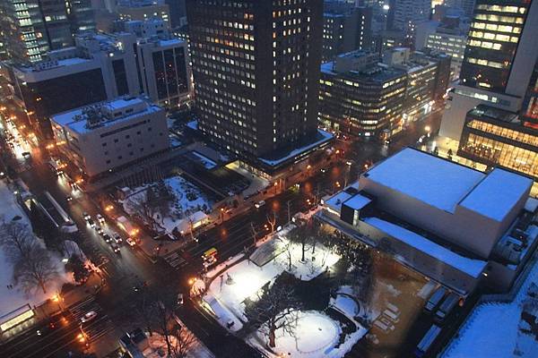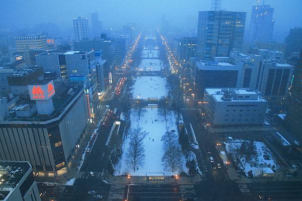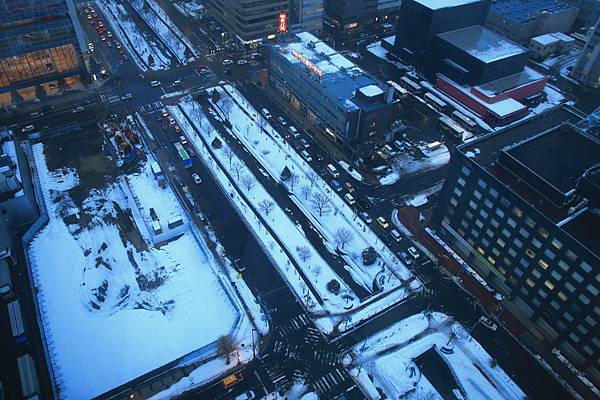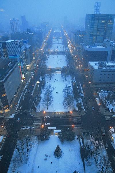 往電視塔西側望去, 覆蓋著白雪的大通公園