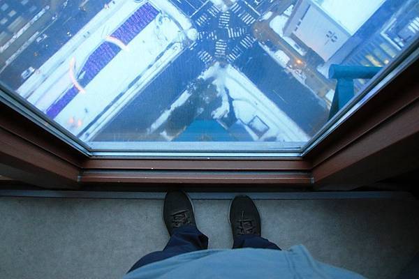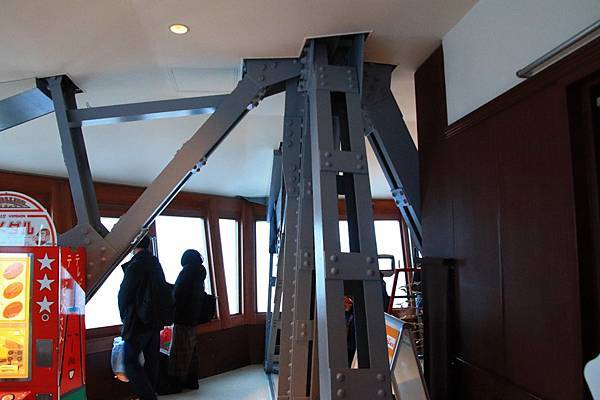 從觀景台內部就能直接看到電視塔的結構, 小心頭不要撞到