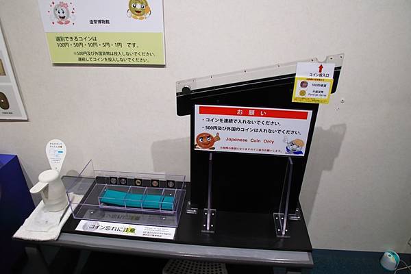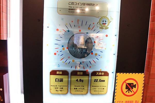 解說造幣局歷史的影片放映區, 雖然是日語, 但左手邊的螢幕有各國字幕, 不怕看不懂