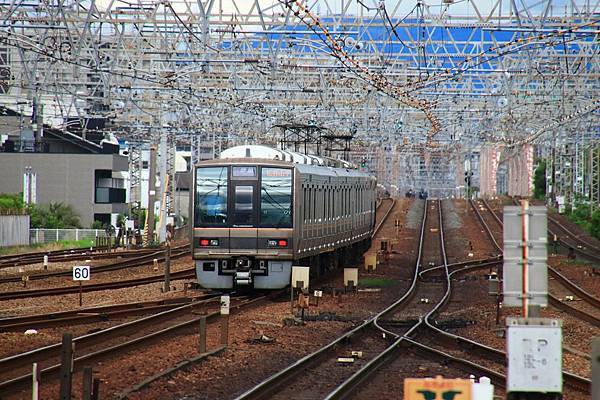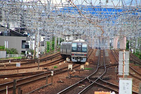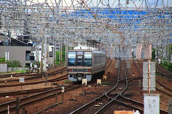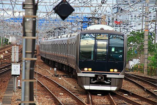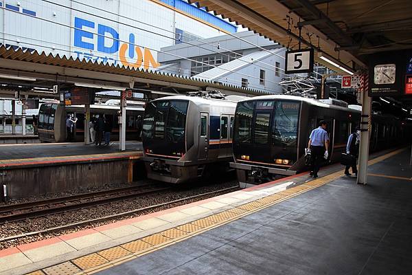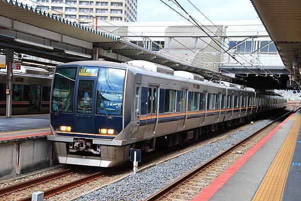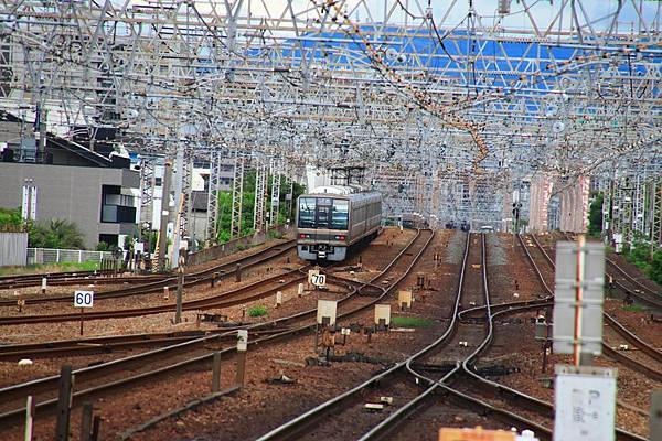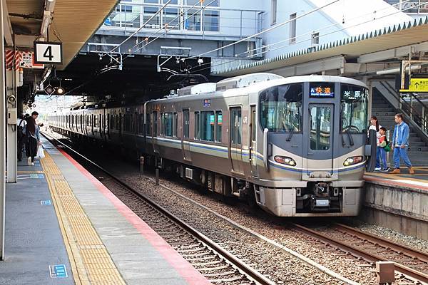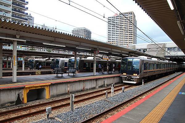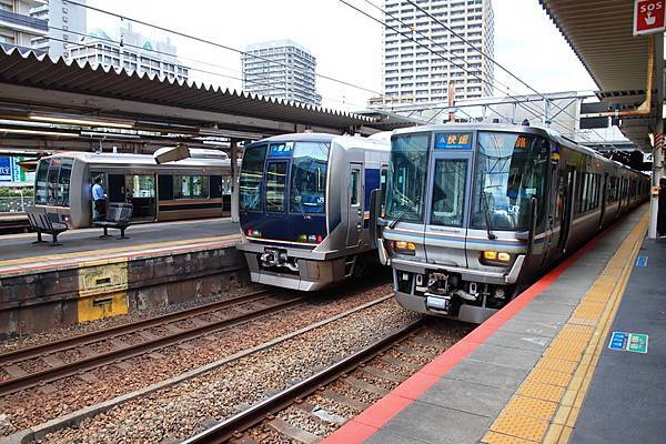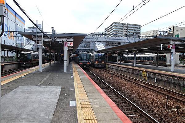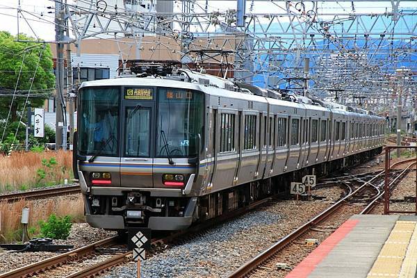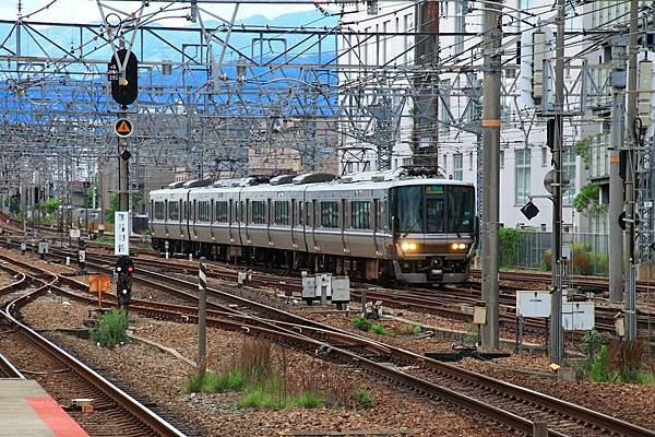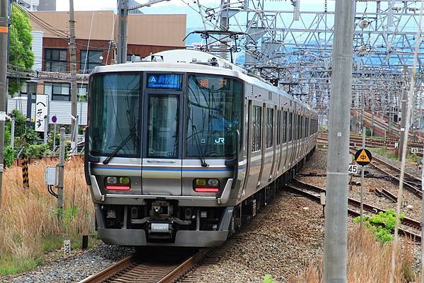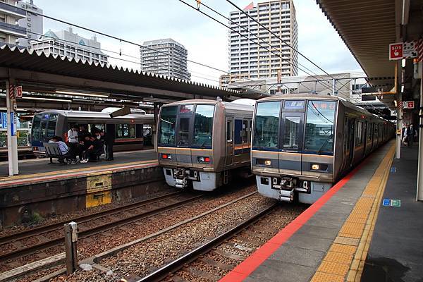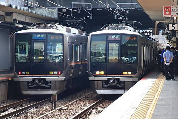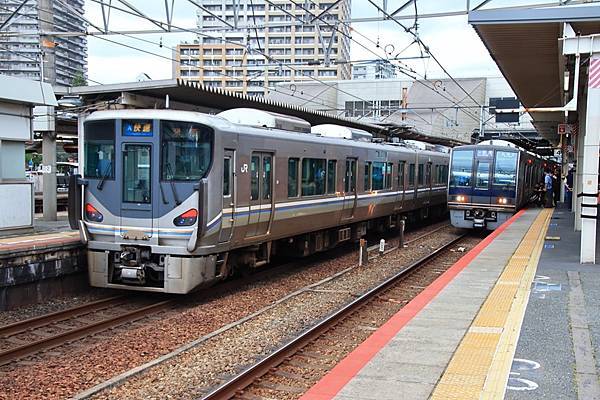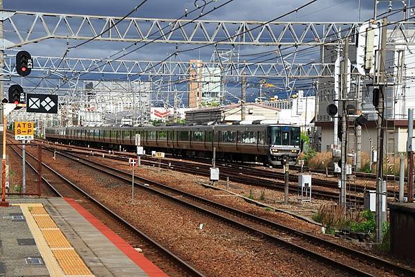 眼前這四輛是223系6000番台, 遠處四輛從單臂集電弓看來是225系