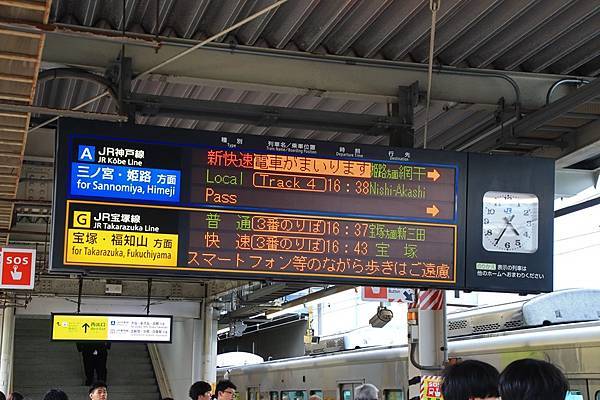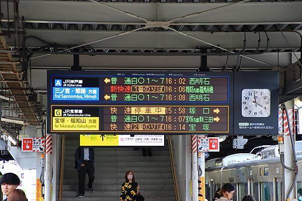 要乘車時務必注意電光揭示板的資訊, 尤其是往寶塚方向